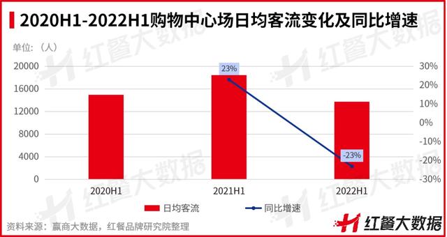 同時(shí),社區(qū)下沉也是2022年餐飲品牌發(fā)展的新景象。近年,由于購物中心越來越多,疊加疫情的影響,購物中心餐飲流量出現(xiàn)下滑。據(jù)贏商大數(shù)據(jù),2022上半年,全國購物中心場日均客流為14,027人,較上年同期減少4,256人,跌幅為23%,客流絕對值甚至也低于2020年同期水平。